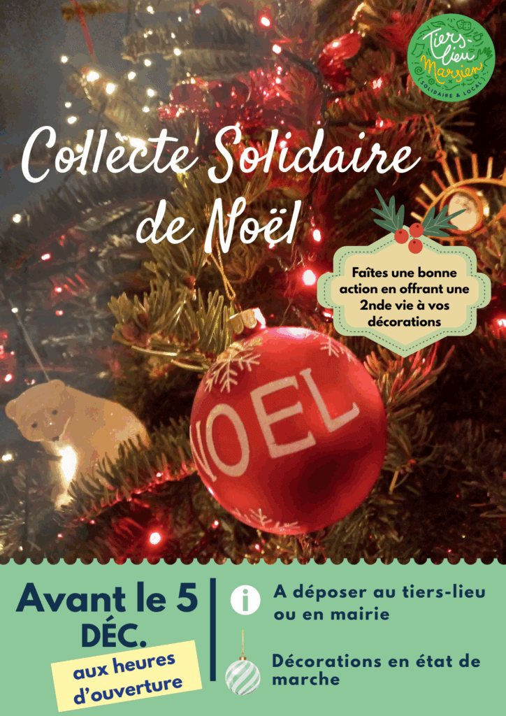 ℹ️ Décos EN ÉTAT DE MARCHE à déposer dans les cartons à disposition au tiers-lieu ou à l’accueil de la mairie avant le 5 décembre.