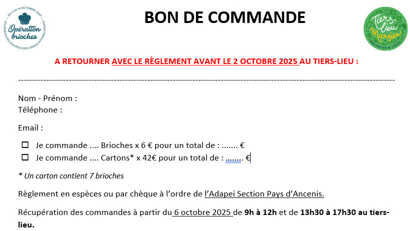 Règlement et bon de commande à déposer au tiers-lieu avant le 2 octobre