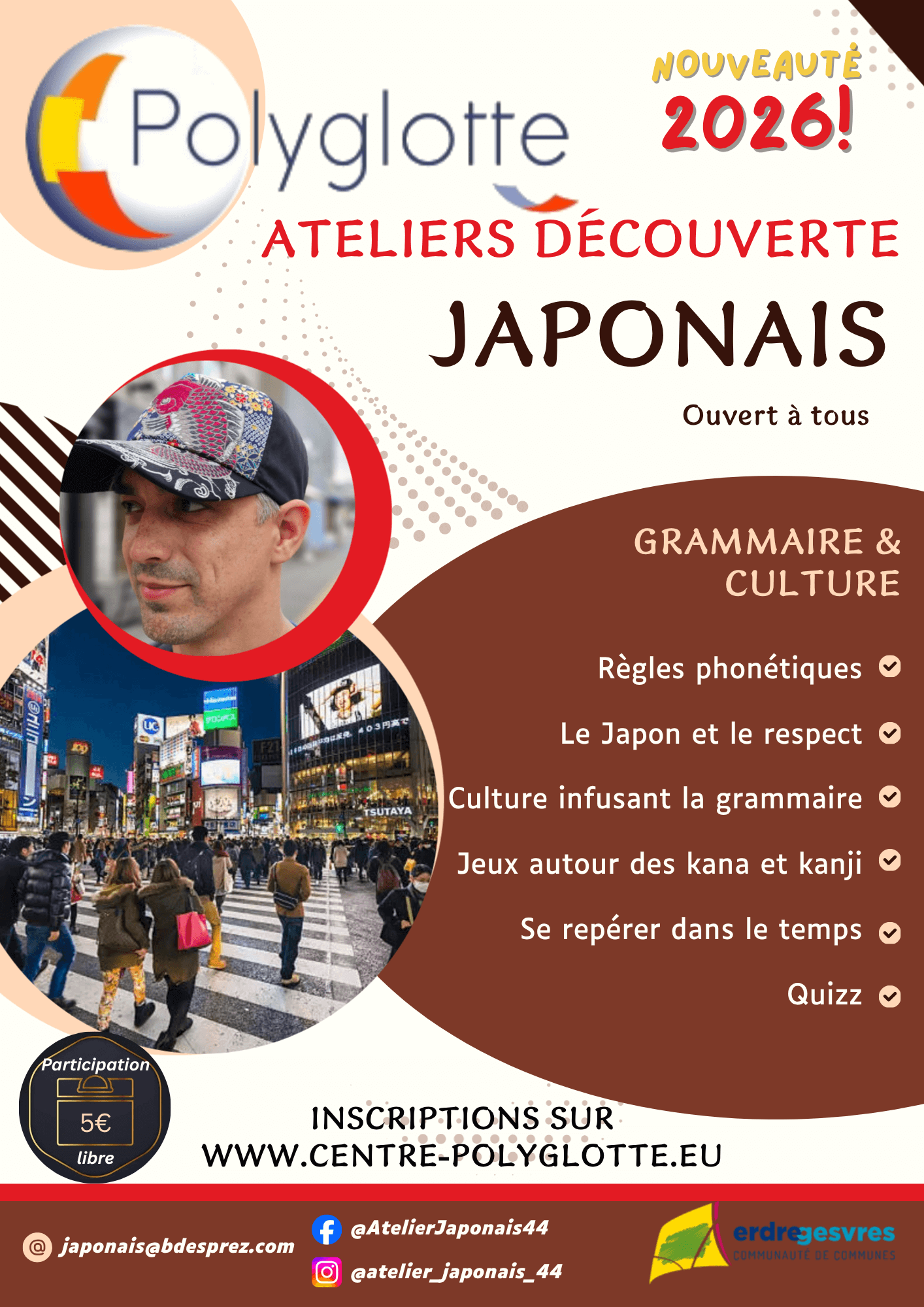 Polyglotte est heureux de s’associer à Bruno DESPREZ et de l’accueillir sur le territoire de la CCEG pour une série de 6 ateliers découverte du japonais, dont un au tiers-lieu.