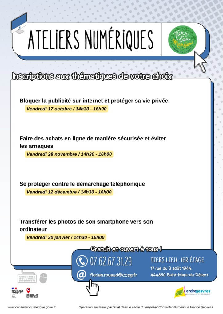 Florian ROUAUD, Conseiller numérique France Services Communauté de Communes Erdre & Gesvres , vous propose plusieurs ateliers collectifs de formation et de sensibilisation au numérique gratuits et ouverts à tous